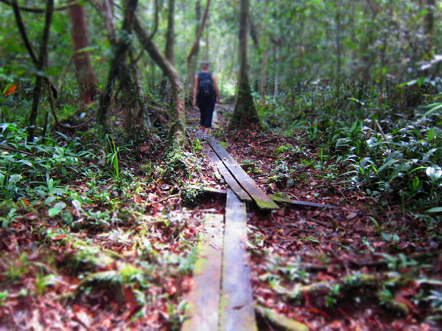 Lots of plank walkways laid down by the park staff to traverse the really swampy areas. I learned the hard way that these moss-covered planks were quite slippery- I slipped off, and then while I was trying to right myself, I slipped again. Sigh.